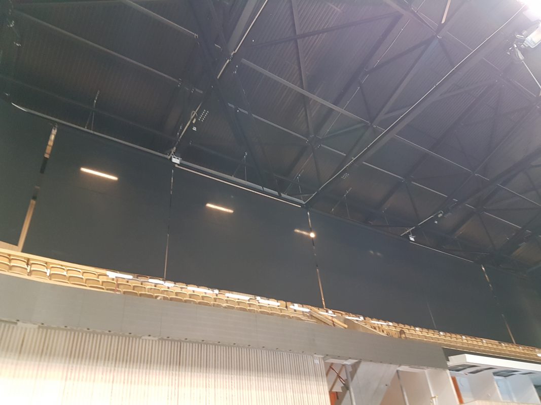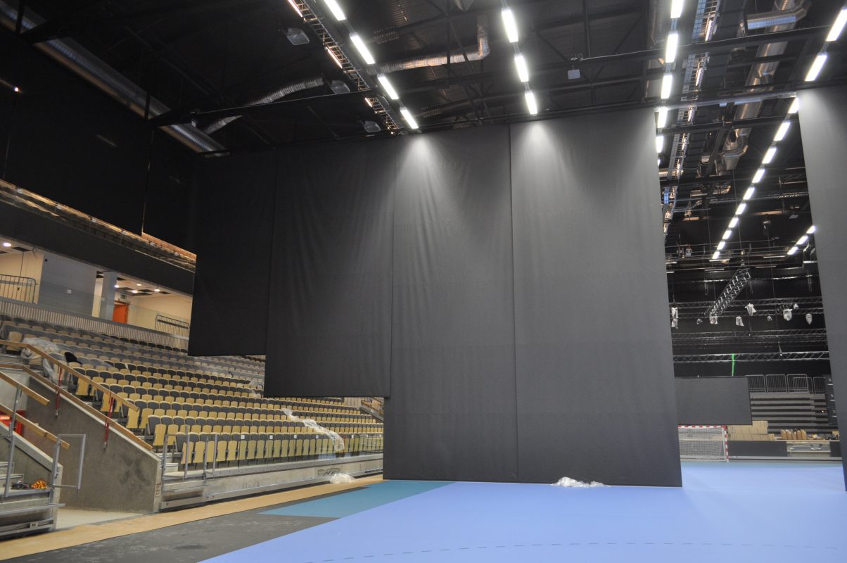 The approx. 200m of motorized blinds makes it possible to change the acoustics in the arena but also shield of empty sections of the audience.