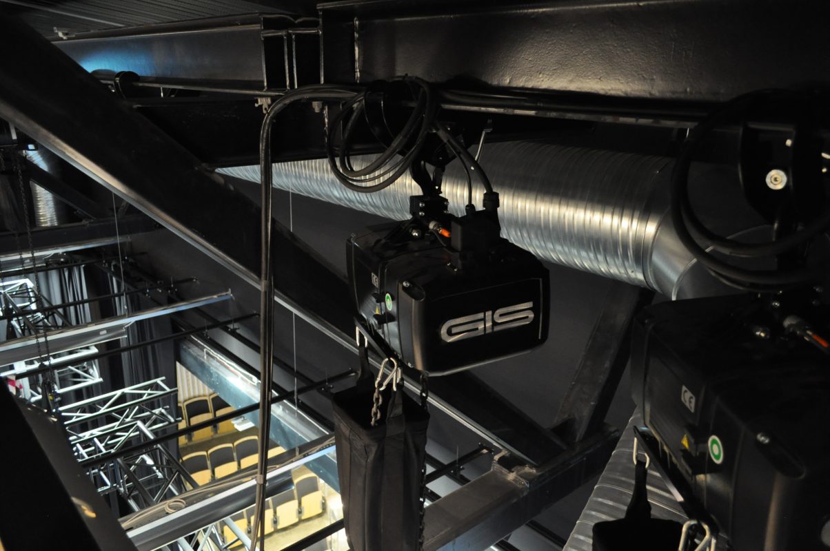 In total 30 of GIS excellent chain hoists with load sensors and encoders were fitted. This allows the customer to run the lifting system in groups of different formations. Everything is controlled by Priebes own FlexControl system.