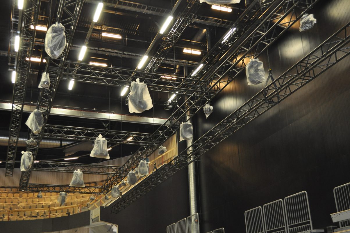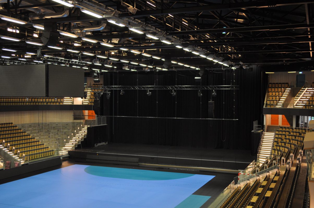 This project was a turn-key contract for the stage technology in the new Partille Arena in the city Partille outside of Gothenburg. Priebe’s mission became to deliver and install; a new advanced lifting systems above the stage area and playing field, a complete set of coverings with track systems, black painted trusses with motorized blinds for shielding the entire upper section of the arena as well as a large center divider.